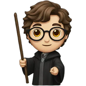 Harry Potter with lightning scar and glasses and hogwarts outfit and his wand emoji