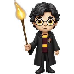 Harry Potter with lightning scar and glasses and hogwarts outfit and his wand emoji