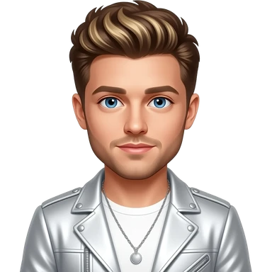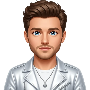 Niall Horan from One Direction with blue eyes, brown hair, white metallic pop tour outfit, necklace emoji