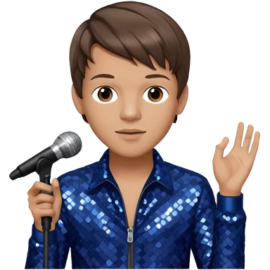 Louis Tomlinson from One Direction with light skin, brown hair, dark blue sequin outfit emoji