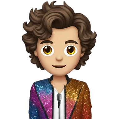 singer Harry Styles in sparkly jumpsuit holding a microphone emoji