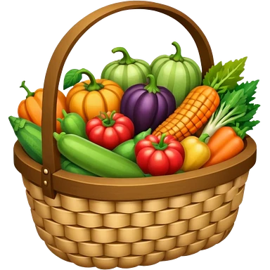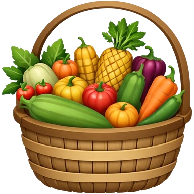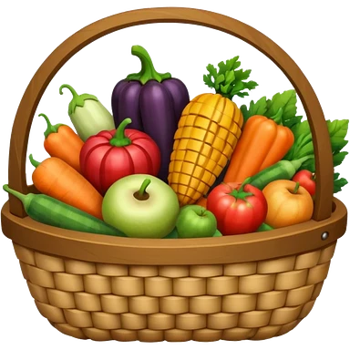 harvest food basket with potatoes, corn, tomato, pepper, meat, milk emoji