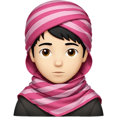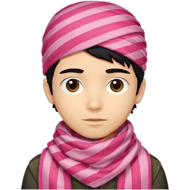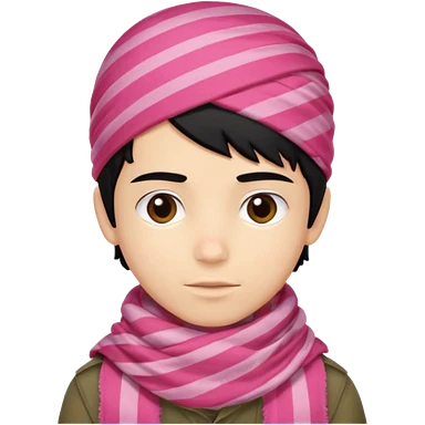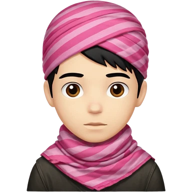Emoji de un chico con turbante árabe que el chico sea de color piel clara y que tenga cabello negro y de fondo blanco y que tenga un pañuelo árabe de color rojo y con rayas rosas emoji