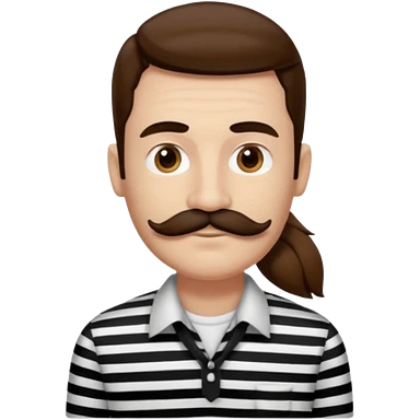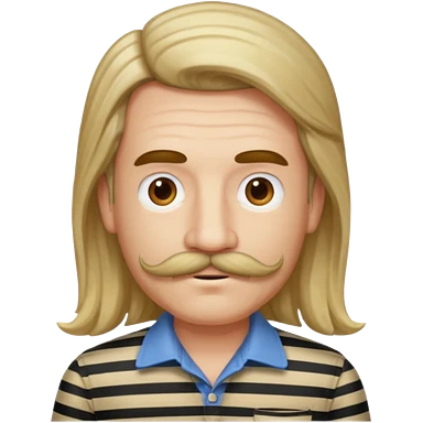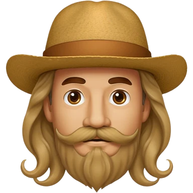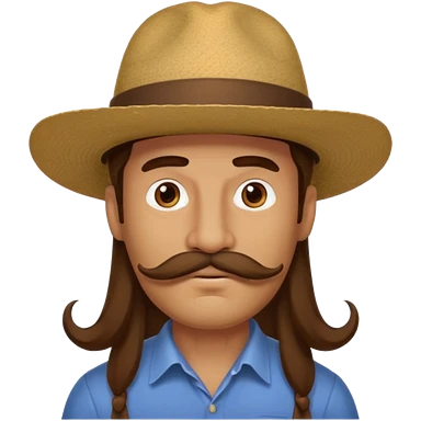 Man with long wavy brown hair, brown eyes, moustache and Cowboy hat emoji
