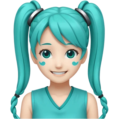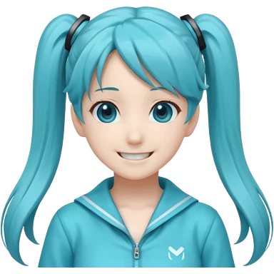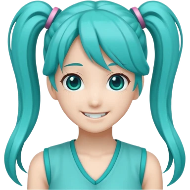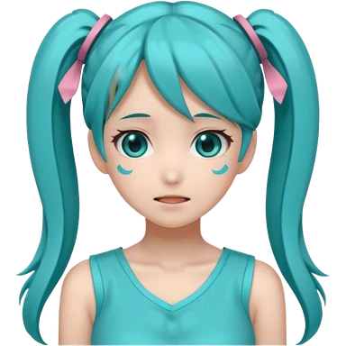 Hatsune miku wearing a biking that is the color of her skin emoji