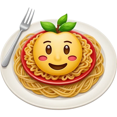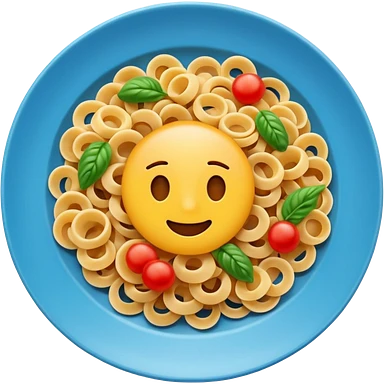 Emoji of a plate with grains and spaghetti, simple bright Apple-style emoji