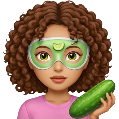 lightskin girl having a spa day with green skincare clay mask and ,cucumbers on her eyeballs and brown curly hair and a pink shirt emoji