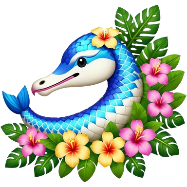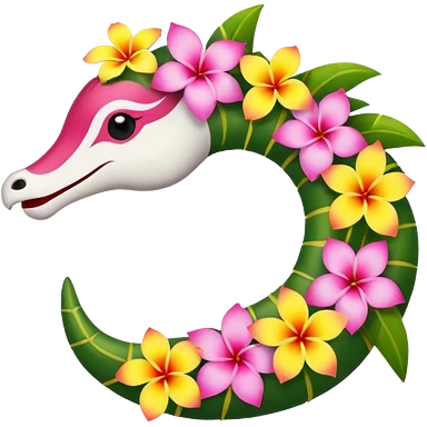 Hawaiian girl with black hair with pink highlights and a swimsuit emoji