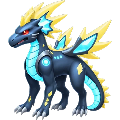 Bioluminescent glowing luminescent starry sparky Futuristic Shiny Haxorus-Zekrom-fusion (full body) emoji