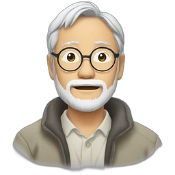 hayao miyazaki with his apron and hands in the pockets emoji | AI Emoji Generator