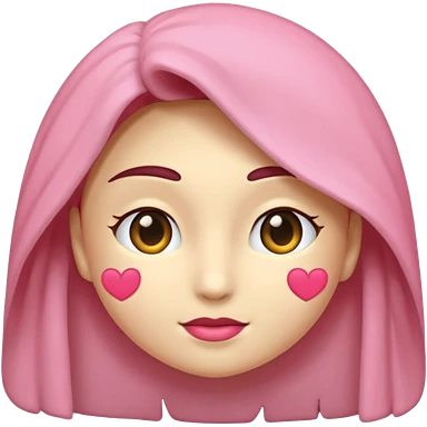 A cute ukrainian girl, looks slightly malaisain with full lips and long auburn hair in two plaited ponytails, has heart earrings in yellow and blue, and is wearing her pink bikini, she is blowing a kiss. emoji