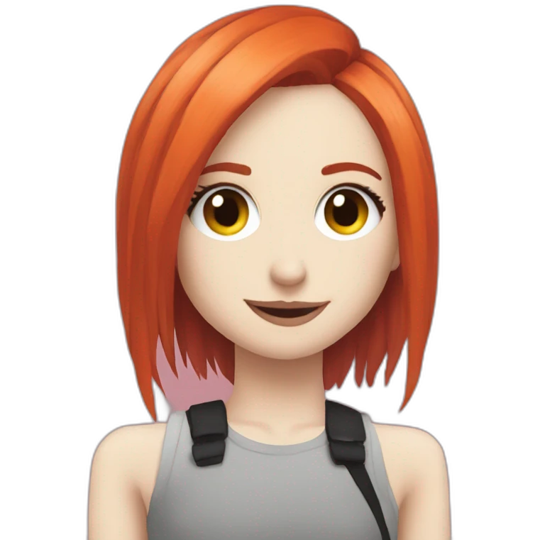 a girl in the 11th grade with short brown hair, a paramore sweater, hoop earings, brown eyes emoji