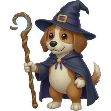 Haz un emoji de ese perro pero con gorra y vestimenta de bruja. Con el bastón y magia la mitad del cuerpo torso emoji