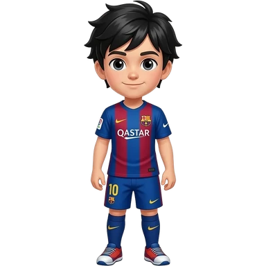 haz un chico con la camisa del barça i pantalones que no sean del barça nike i pelo hacia delante i negro i cuerpo entero emoji