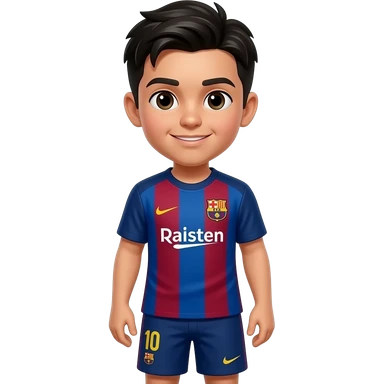 haz un chico con la camisa del barça i pantalones que no sean del barça nike i pelo hacia delante i negro i cuerpo entero emoji | AI Emoji Generator