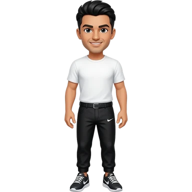 haz una persona con pantalones nike negros i una camisa blanca i zapatos nike i pelo negro i piel blanca emoji