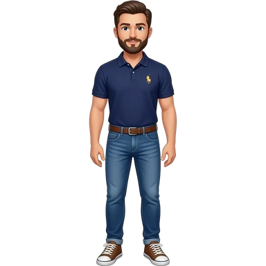 haz una persona con pantalones tejanos apretados con barba i un polo raph lauren cuerpo entero que se vean los zapatos emoji