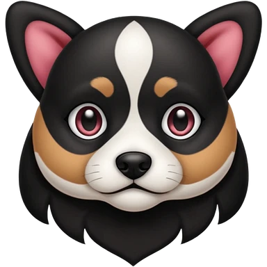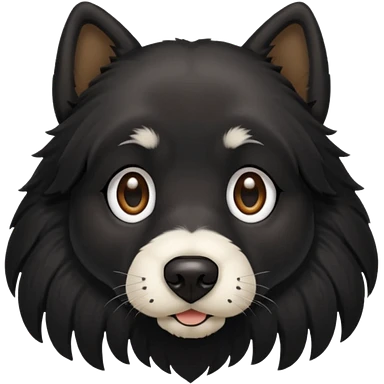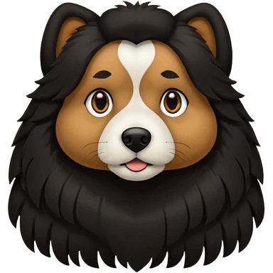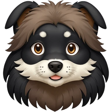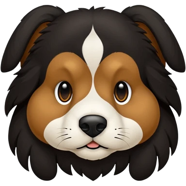 haz un perro negro con las patas y el ozico blancos toques marrones mucho pelo y ojos marrones emoji