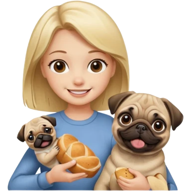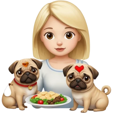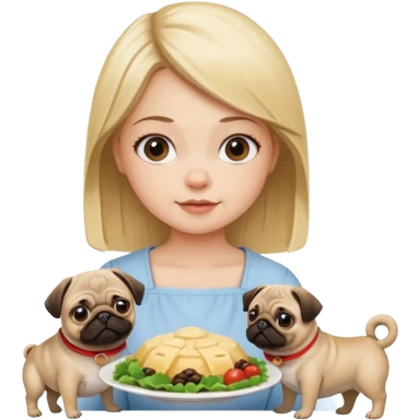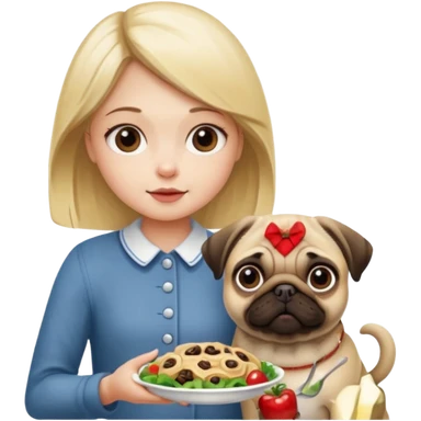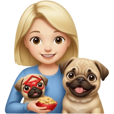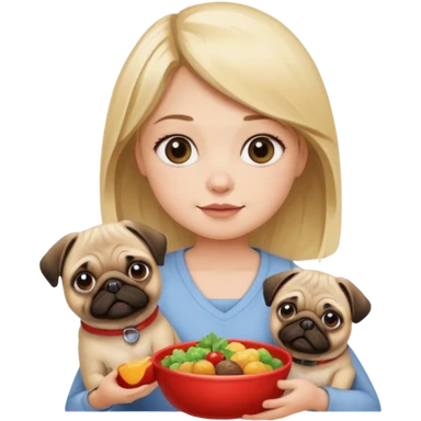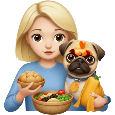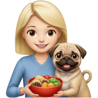 haz una chica rubia dandole comida a su perro pug emoji