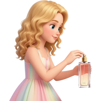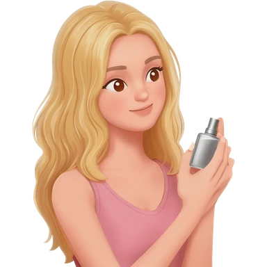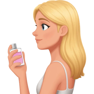 haz una memoji rubia d pelo largo aplicandose perfume emoji
