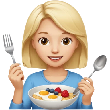 haz una chica rubia desayunando emoji