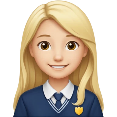 haz una chica rubia poniendose un uniforme de colegio de pelo un poco largo emoji