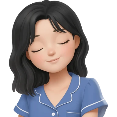 Haz una imagen de una mujer con cabello negro con cabello en capas , con una sonrisa en su cara y la punta de su dedo indice entre sus dientes emoji | AI Emoji Generator