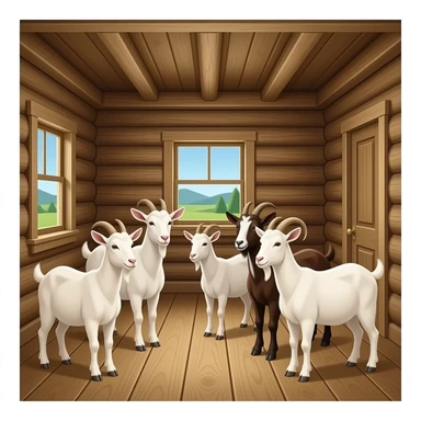 hazme la parte de dentro de una casa, dentro de la casa tienen que haver siete cabras la casa tiene que ser rustica emoji