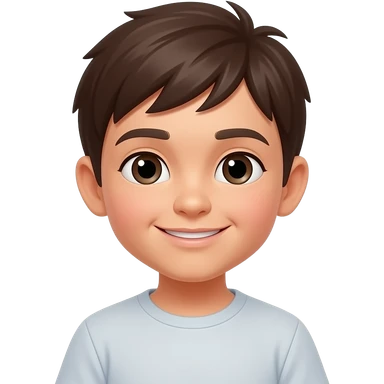 hazme un emoji como los de iphone personalizado, que sea de un niño de 4 años piel blanca/rosada (español), con pelo negro de punta y sonriendo emoji