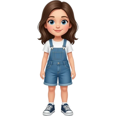 Hazme con el cuerpo entero de pie un chico con pelo rizado largo hacia abajo, ojos marrones, boca y nariz mediana. Bajito de constitución un poco fuerte un poco bronceado, camiseta y pantalon corto emoji