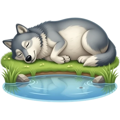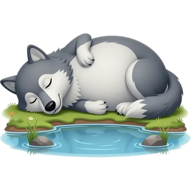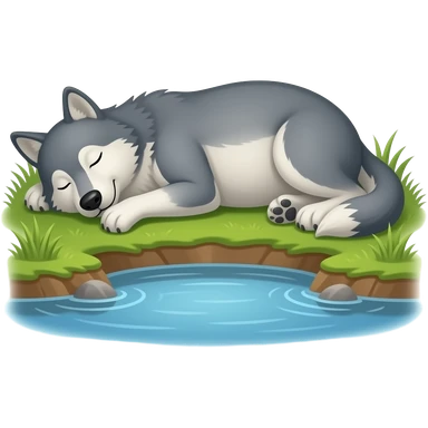 Hazme un lobo al lado del lago. El lobo tiene que tener mucha barriga y estar durmiendo. emoji