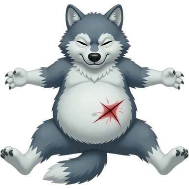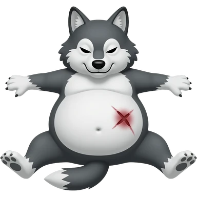 Hazme un lobo durmiendo y estirado. Tiene que tener mucha barriga. Tiene que ser malo. Tiene que tener una herida en la barriga emoji