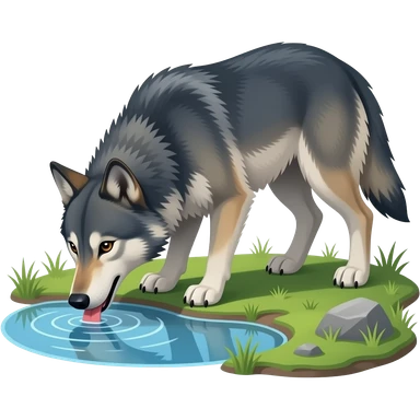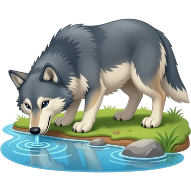 Hazme un rio con un lobo bebiendo del lago. El lobo tiene que tener mucha barriga. emoji