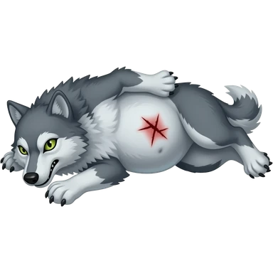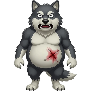 Hazme un lobo despierto y con cara de susto. Tiene que tener mucha barriga. Tiene que ser malo. Tiene que tener una herida en la barriga emoji