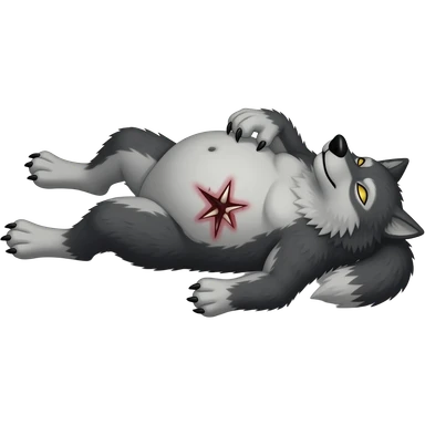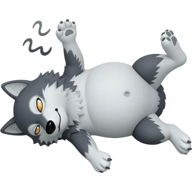 Hazme un lobo durmiendo y estirado. Tiene que tener mucha barriga. Tiene que ser malo emoji