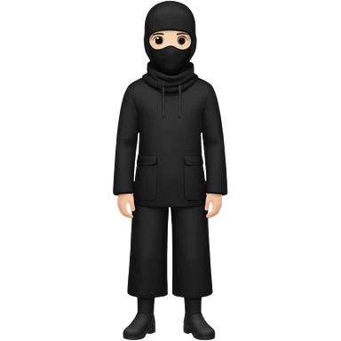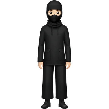 Hazme un emoji que sea una persona con pantalones anchos color negro con un saco negro y con un pasamontañas emoji