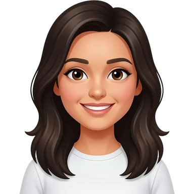 Crie um emoji personalizado com as seguintes características:Rosto redondo.Cabelos escuros e cacheados.Pele clara,mulher de 40 anos.Um sorriso largo e amigável. emoji