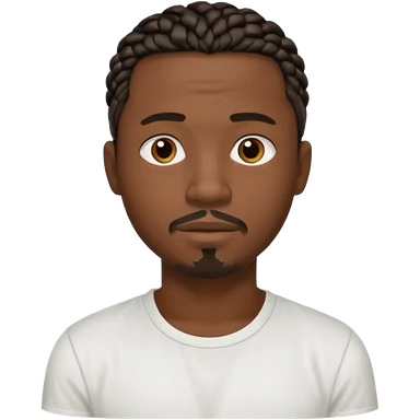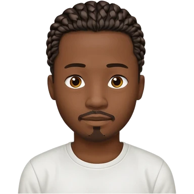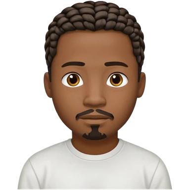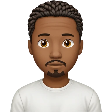 Hazme un emoji de un hombre negro con trenzas cortas, camiseta blanca y una pequeña perilla sin bigote emoji