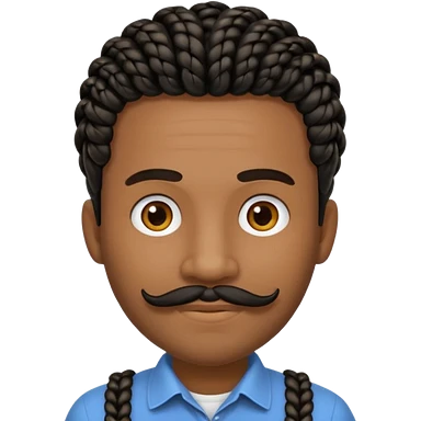 Hazme un emoji de un hombre negro con trenzas cortas, camiseta blanca y una pequeña perilla emoji