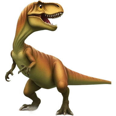 un t-rex surfeando una ola con una tabla de surf en el caribe emoji