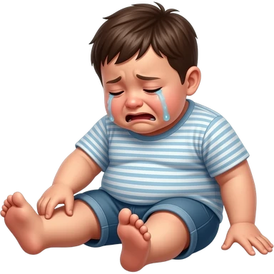 hazme un niño en el suelo llorando i tocandose la pierna i que el niño este muy gordo emoji