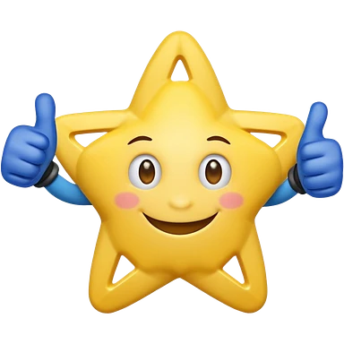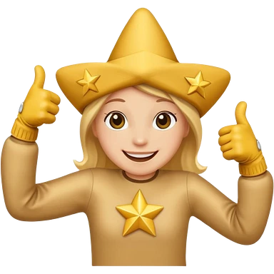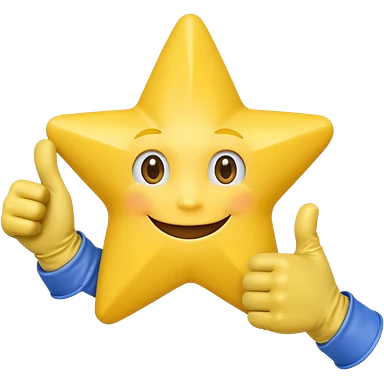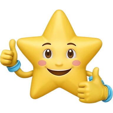 HD a smiling happy dancing star with both gloved hands doing thumbs up and blue background emoji | AI Emoji Generator