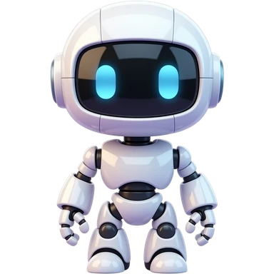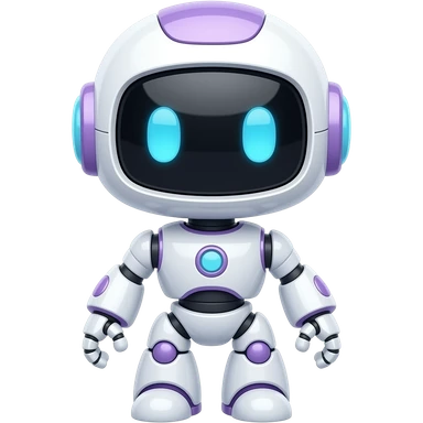 Cute AI robot same pose, Apple iPhone emoji style, glossy 3D, white + soft pastel purple, no neon, black glass face, blue eyes, soft shadows, premium clean lighting, transparent background emoji