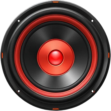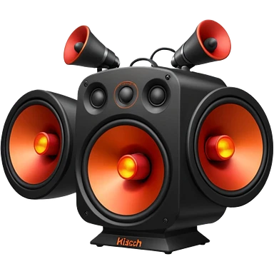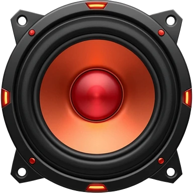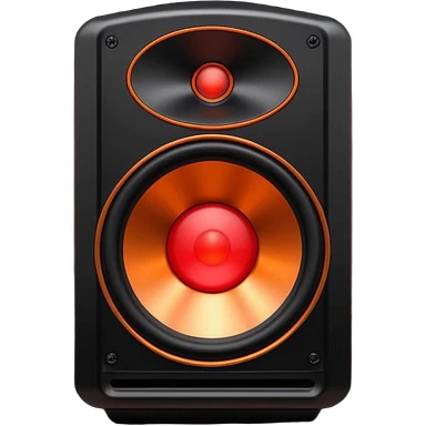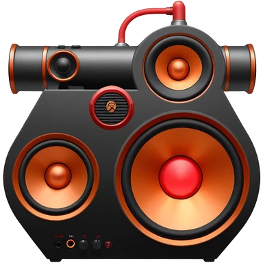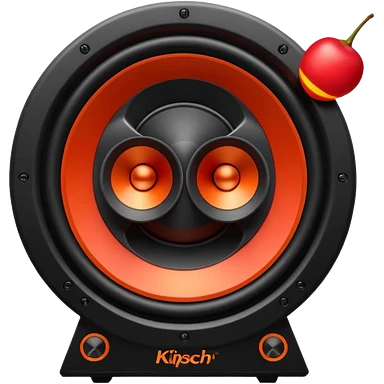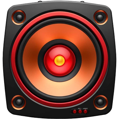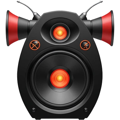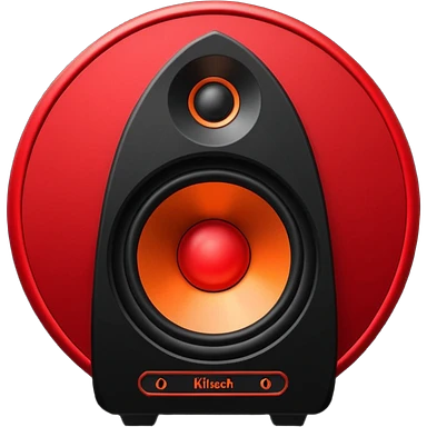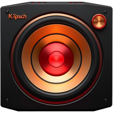 Head: A black KLIPSCH RP-8000F speaker, often represented with a red center or speaker cone. Core: A small, bright glowing cherry-red circle representing his core. Weapons: Shoulder-mounted speakers and plasma cannons on his arms. emoji