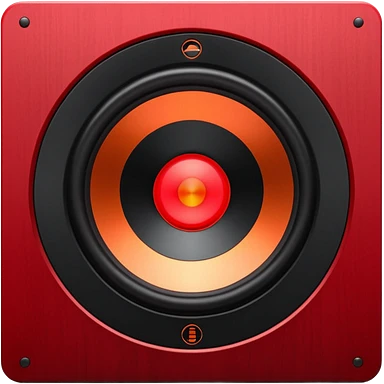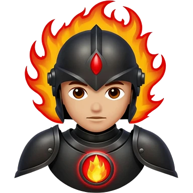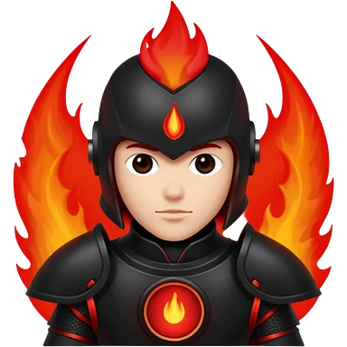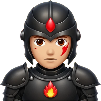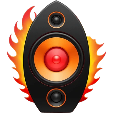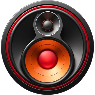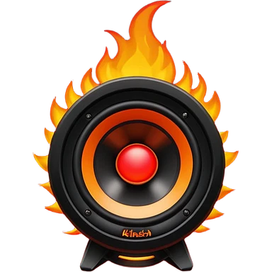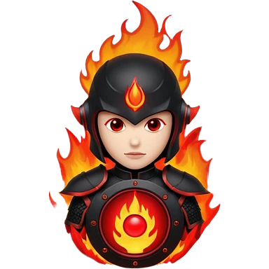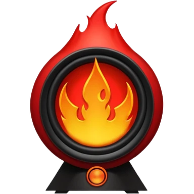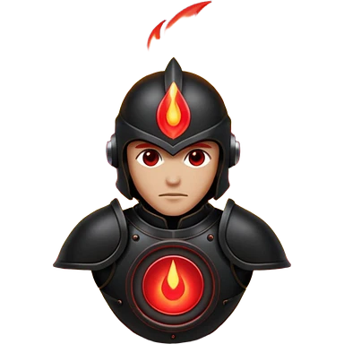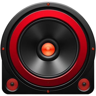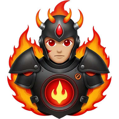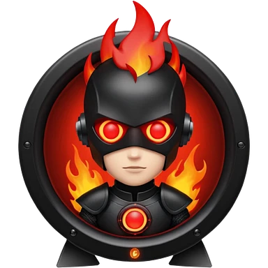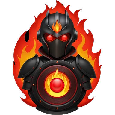Head: A black KLIPSCH RP-8000F speaker, often represented with a red center or speaker cone. Core: A small, bright glowing cherry-red circle representing his core. Body & Armor: Primarily black armor plating with bright red accents or flames. emoji