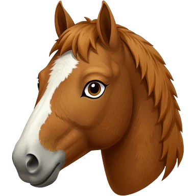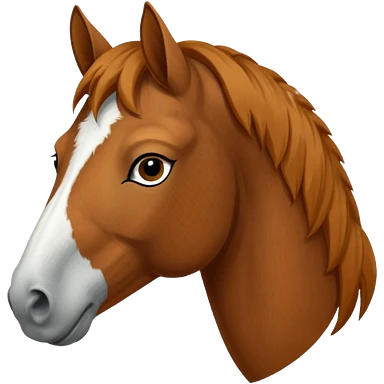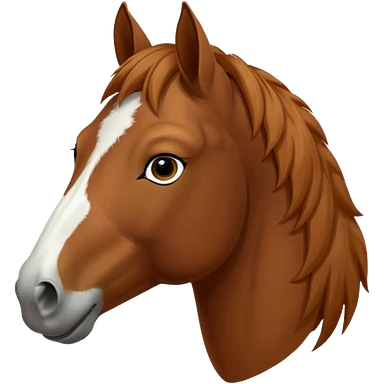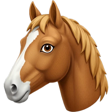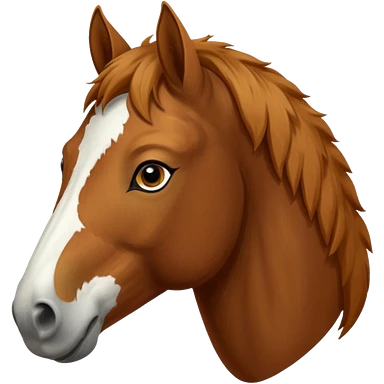 Head of a sorrel horse with a wide white blaze from his forehead, under his forelock, running down his face and under his muzzle, facing forward. White should go between nostrils and not on the side of the lips. emoji