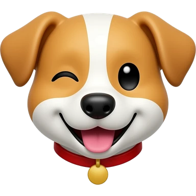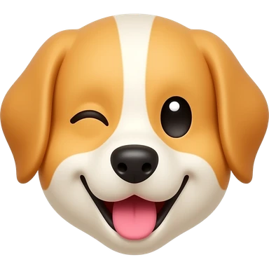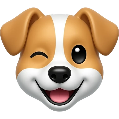 head of a happy dog with a winking eye emoji