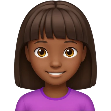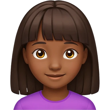 Head without neck of a 10-year-old girl with dark skin, brown hair, and bangs on her forehead. emoji