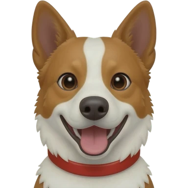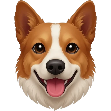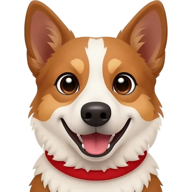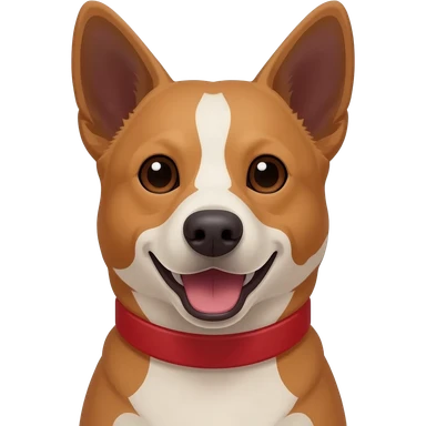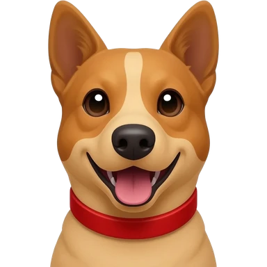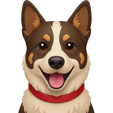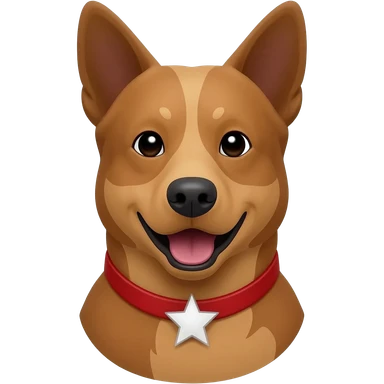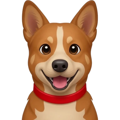 Head and shoulders of an all red Australian cattle dog with white Bentley mwith red neck and chin. happy open mouth and pointy ears emoji | AI Emoji Generator