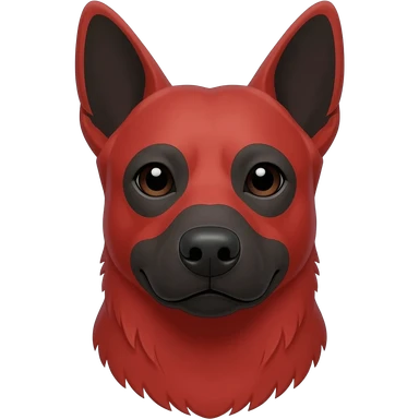 Just face and neck of a Bentley stared Australian cattle dog with red head and red chest and has a dark muzzle, erect pointy ears emoji